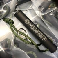 3/4″ diameter, 3″ long anodized aluminum, laser engraved, faux silencer key chain. Have a little Liberty everywhere you go. Ships with Paracord lanyard and 1″ split ring.